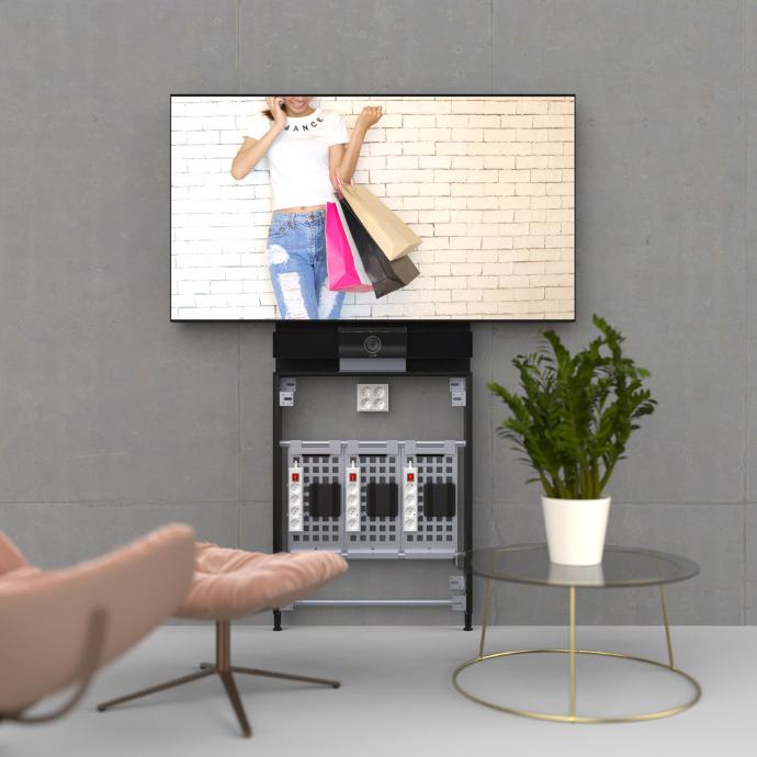 I traditionella AV-installationer placeras mycket kablage och produkter bakom skärmen.